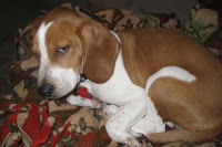 Wylie gets so tired on a long day when we are home. Check out the picture on the right. I caught him sleeping on the sofa. He gave me the get “out of here” look! Boy, is he growing fast. He weighed in at 18 pounds at the vet Friday.