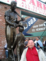 Last night our IBM reps took us to Fennway Park and a Sox game. It was a madhouse of people with what looked to be a sold-out game. I got my picture taken at the famous Ted Williams statue at Gate B. We had a fun evening. After the game the streets were just jammed with the crowd. We were going to take the T back, but the subway was overflowing onto the street level. We finally caught a cab.