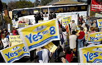 If you look at some of the pro-Prop 8 ad campaigns, you see a definite influence from the Christian community. The theme of fear of the unknown and call for Christian unity rang clear in the ads. It was not a campaign about the issue at hand but rather a campaign to deny rights using fear and half truths as the main vehicle to make the point. The undercurrent of the ads is what I take issue with: equating secular marriage to civil marriage. As a strong believer in the separation of Church and State, these individuals crossed the line to impose their religious beliefs about secular marriage to the civil right of marriage. The two are vastly different; more about that later this week.