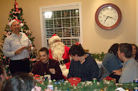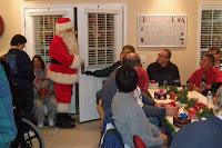 We ate, socialized and caroled with a room overflowing with happy people parting to the max. When Santa made an appearance, the room just erupted in joy, laughter and clapping. He did a great job of making the giving of each gift something special for everyone. I was happy to serve as his assistant. My co-workers and I left with high spirits and feeling blessed to have experienced the evening.